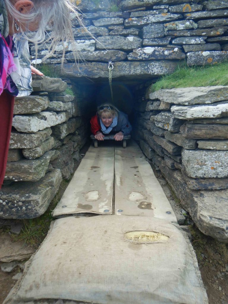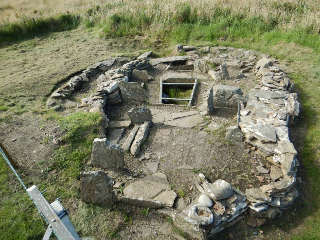 Unmittelbar daneben, jedoch aus der neolithischen, noch früheren Zeit, gibt es eine Anlage, in der mit erhitzten Steinen große Wassermengen erwärmt wurden. Der Zweck ist jedoch unklar. Da es solche Anlagen nur in Großbritannien gab, liegt es eigentlich auf der Hand, dass hier der Fünf-Uhr-Tee zubereitet wurde.
