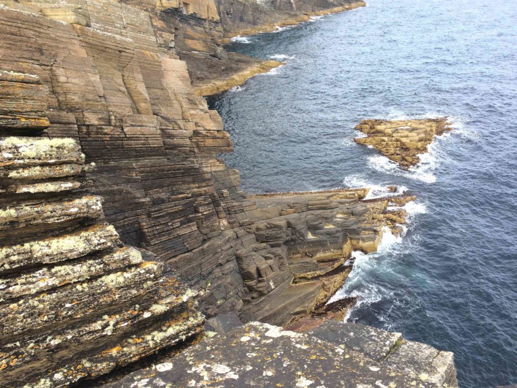 Die Hauptattraktion ist für uns jedoch die Steilküste mit aufgefalteten Gesteinsschichten (Flagstones) voller versteinerter Pflanzen und darüber unzählige Möwen, die waghalsige Flugmanöver üben.