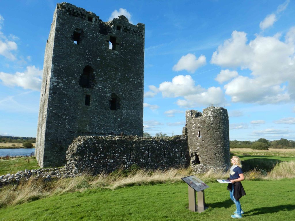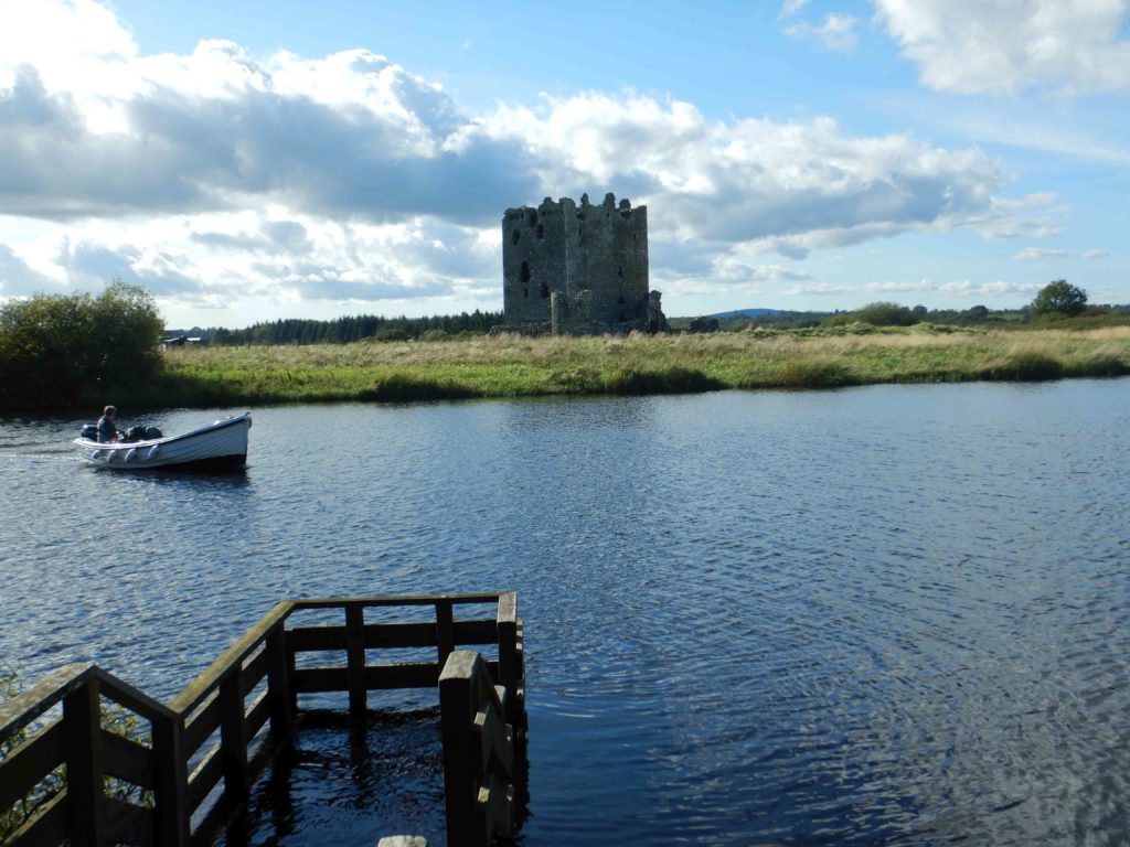 Auf den letzten Drücker kommen wir am Threave Castle an und haben Glück, das wir noch rein dürfen. Das Gemäuer liegt auf einer Insel und ist nur per Motorboot über einen Fluß zu erreichen. Man muß ca. 800m vom Parkplatz bis zum Bootsanleger laufen, und wird dann auf die Insel gebracht. Die Burg ist eine Ruine. in der nun Falken nisten, und es sind nur noch die Mauern zu sehen, aber die Gegend uns der Fluß machen das wieder wett.