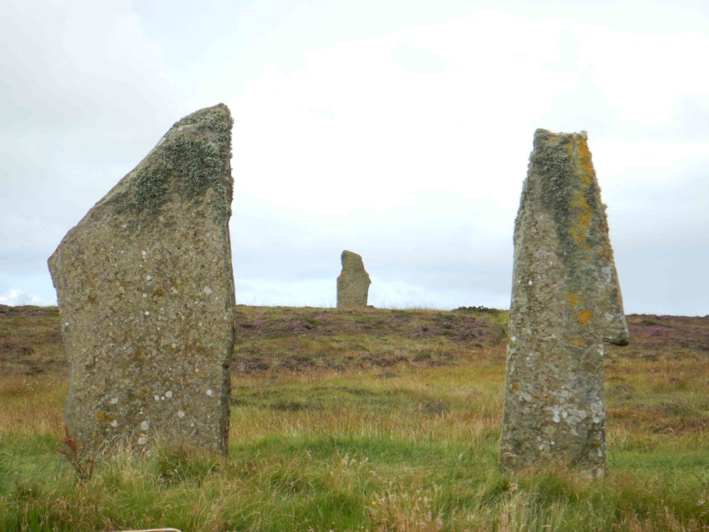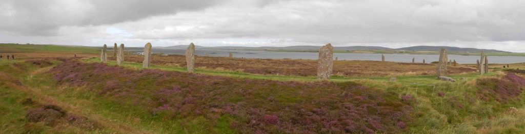 Etwas weiter, aber in Sichtweite zu den beiden vorherigen Orten, befindet sich der Ring of Brodgar wiederum ein Steinkreis aus aufrecht stehenden großen Flagstones, aber mit einem recht großen Durchmesser. Leider darf man aktuell nicht innerhalb des Kreises laufen, nur außen herum, trotzdem kann man deutlich die Energie der Steine spüren.
