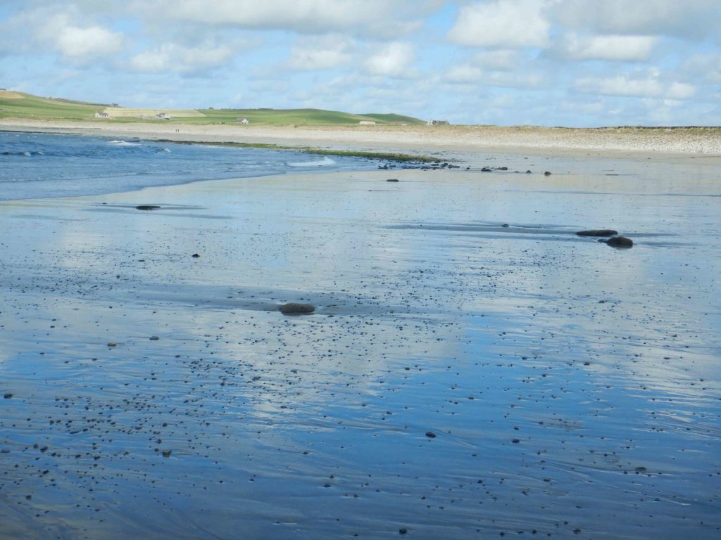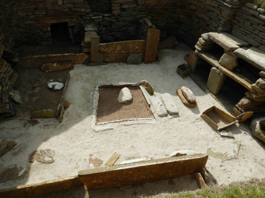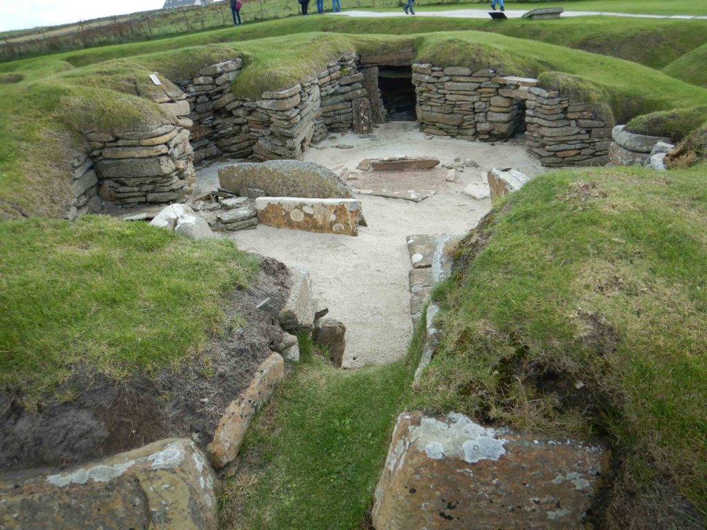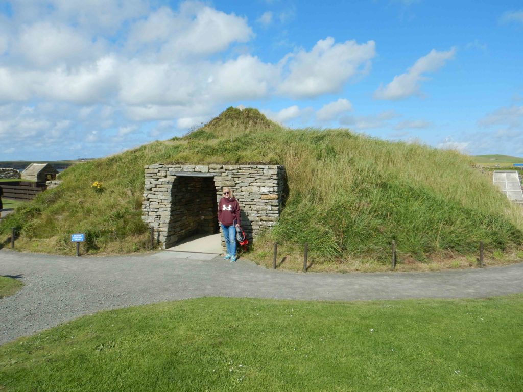 Von dort aus geht es weiter nach Stromness, ein kleiner Ort mit Fährhafen. Während Micha sich das kleine Museum anschaut, schlendert Karin durch die verwinkelten Gassen der Altstadt, probiert das legendäre Orkney-Eis und kauft einen Scapa Flow Hoodie zum Andenken. Danach fahren wir nach Skara Brae, eine 5000 Jahre alte Siedlung direkt am Strand. Während eines Sturms 1850 wurden diese Ruinen entdeckt, heute können die ausgegrabenen Gegenstände bestaunt werden.