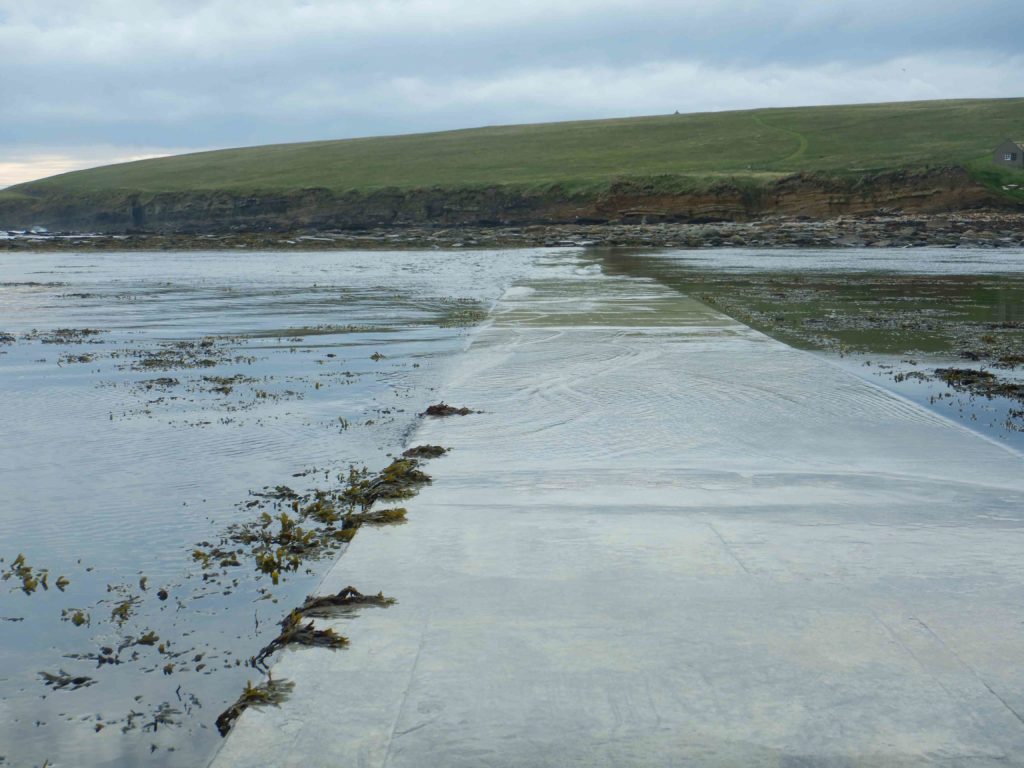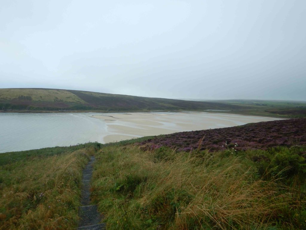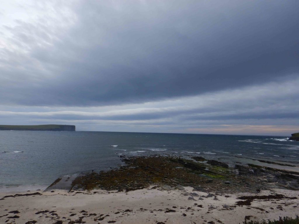 Die Nacht verging ohne Schäden am Zelt und am Morgen ist der Wind eingeschlafen, dafür regnet es mal wieder leicht. WIr bleiben im Zelt und arbeiten am PC, bis es Zeit wird in Richtung Insel Hoy zu starten. Auf dem Weg zur Fähre sehen wir einen Hinweis „Waulkmill Bay“ bei Scapa und fahren dort hin. Es sieht ganz nett aus, aber kaum das wir aussteigen nerven wieder die bekannten kleinen Fliegen rum, so fahren wir nach ein paar Bildern weiter.