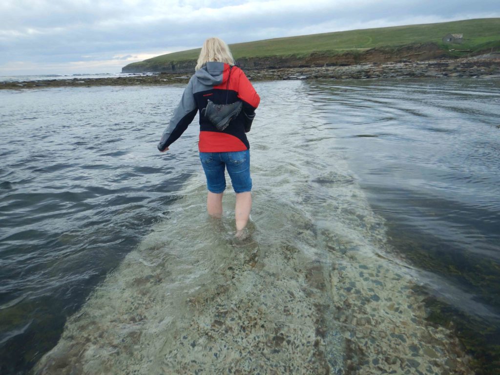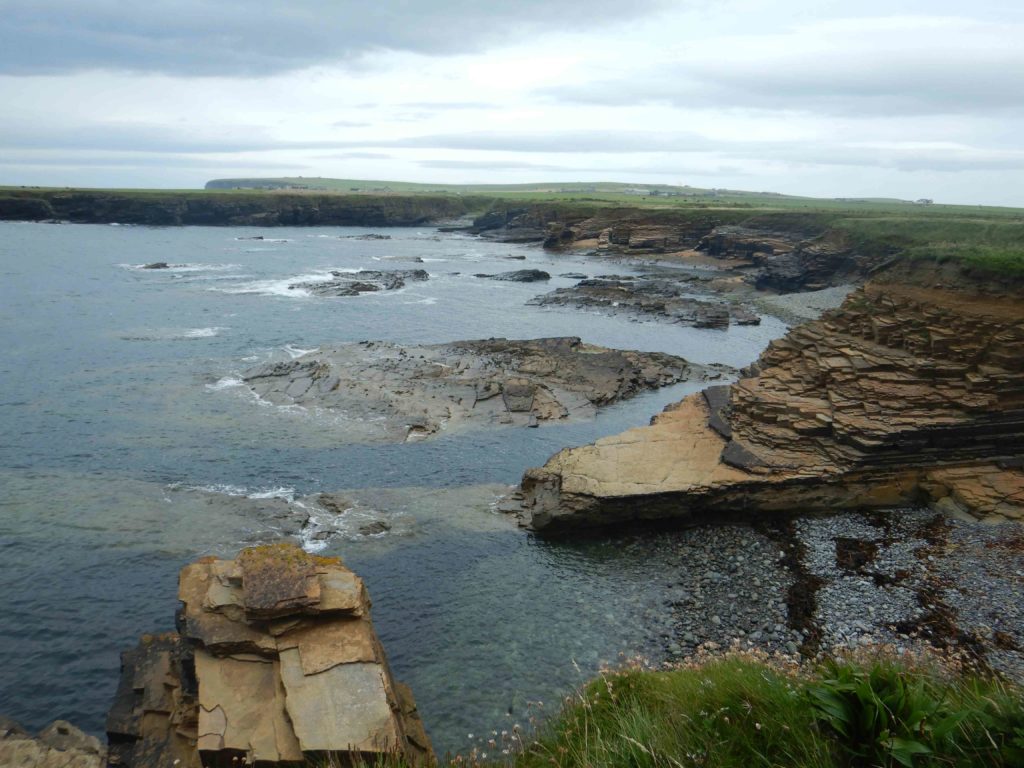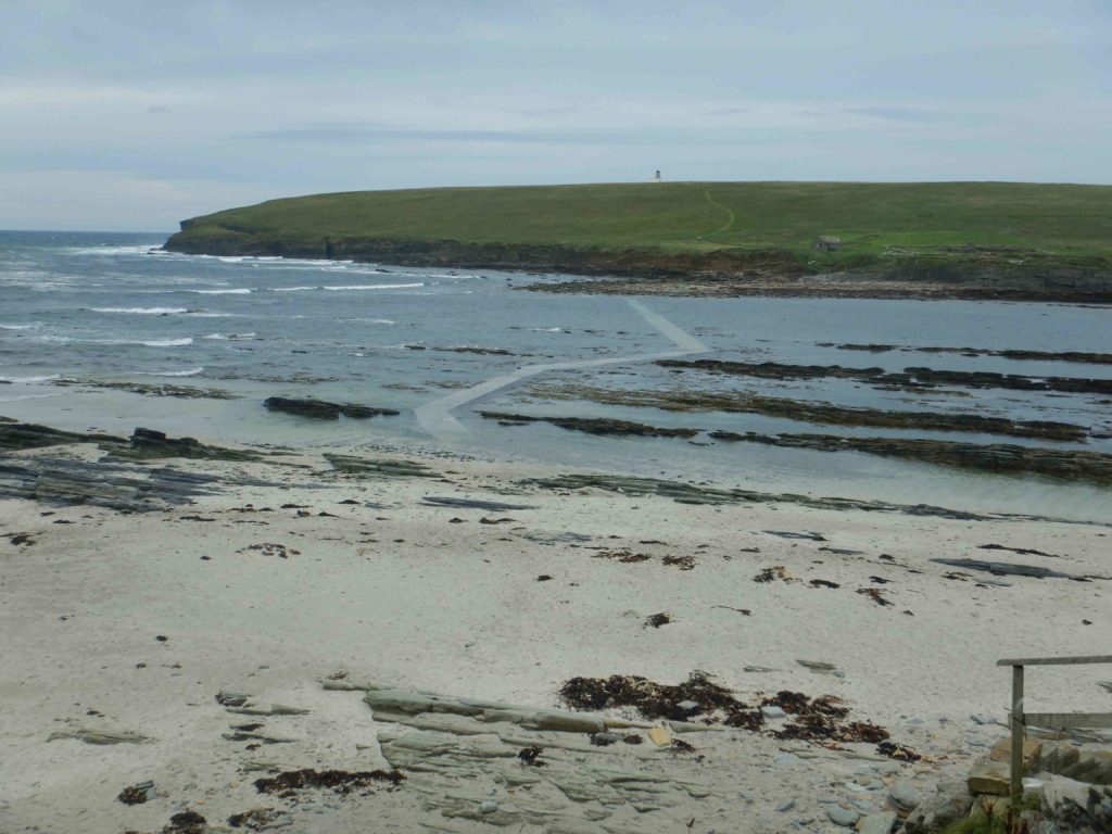 Wir fahren mit dem Auto den Nordteil der Insel ab, das hatten wir beim letzten Mal nicht geschafft. Wir fahren zur Insel Brough of Birsay, welche nur über einen Gehweg bei Ebbe zu erreichen ist. Als wir auf dem Parkplatz ankommen ist der Weg noch überflutet und wir wandern etwas an der Küste entlang, welche wieder einmal guten Einblick in die Geologie der Erdkruste gibt.