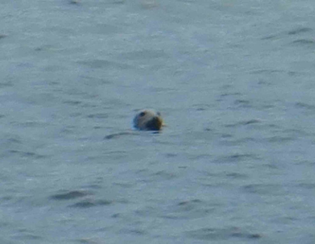 Nach ca. 1 Stunde scheint es uns möglich, den Weg zu benutzen, obwohl wir die Schuhe ausziehen und die Hosen bis an die Knie hochkrempeln müssen. Das Wasser ist zwar kalt, aber der Untergrund ist an den gefluteten Stellen nicht so rutschig wie befürchtet, so kommen wir, dank „early wet crossing“, mit nassen Füsse als Erste auf der Insel an. Am Ufer sind die nassen Steine richtig glitschig, also erstmal abtrocknen (Handtuch haben wir extra mitgenommen), und Socken und Schuhe wieder anziehen. Als dann umwandern wir die Insel und schauen uns die spektakuläre Küstenlinie an, allein dafür hat sich die Fahrt gelohnt. Zudem soll es hier Papageientaucher (Puffins), Robben und Wale geben, nach denen wir fleißig Ausschau halten, ist aber wahrscheinlich auch nur ein Werbegag. Wale oder andere große Fische sind natürlich nirgends zu sehen, aber wir sehen ein paar Robben im Wasser umher tauchen. An Vögeln gibt es wieder die bereits bekannten Arten (Möven und Tölpel), Papageientaucher konnten wir leider nicht erkennen. Der Leuchtturm und die Reste einer Wikingersiedlung sind nicht wirklich prickelnd. Nach ca. 1,5 Stunden haben wir somit genug gesehen und gehen, nun trockenen Fußes, den Weg wieder zurück zum Auto.