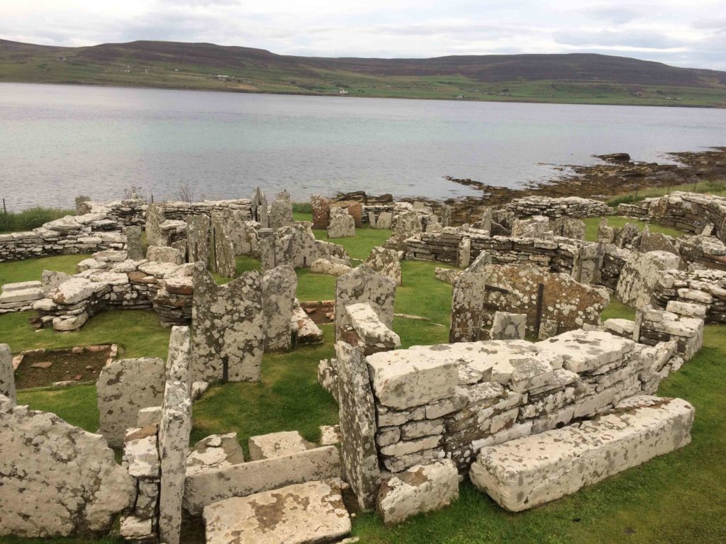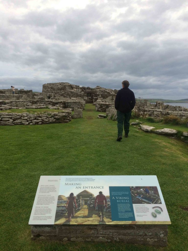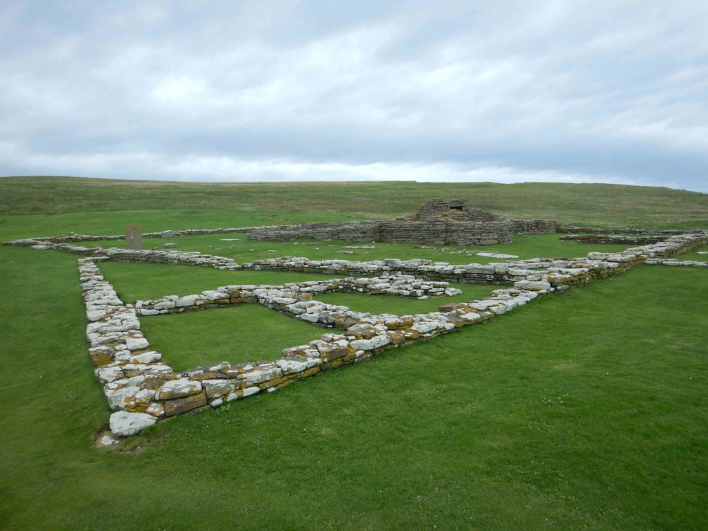 Der Broch of Gurness ist wieder ein hoher Wehrturm und eine alte Siedlung, die über mehrere Zeitperioden von verschiedenen Kulturen benutzt wurde und deren Zeugnisse sich teilweise überlagern. Unter anderem sind die Reste des Steinturms, die Grundmauern etlicher darum angeordneter Gebäude und zwei Wallanlagen zu besichtigen. Typisch britisch verbietet nur ein Schild am Eingang den Zugang ausserhalb der Öffnungszeiten, aber richtig abgesperrt ist nichts. Wir schauen uns, obwohl bereits geschlossen ist, trotzdem alles an und haben noch den Vorteil, das wir dabei alleine sind. Ein schlechtes Gewissen plagt uns dabei nicht, denn mit unserer Mitgliedschaft bei Historic Scotland wäre der Eintritt eh frei gewesen.