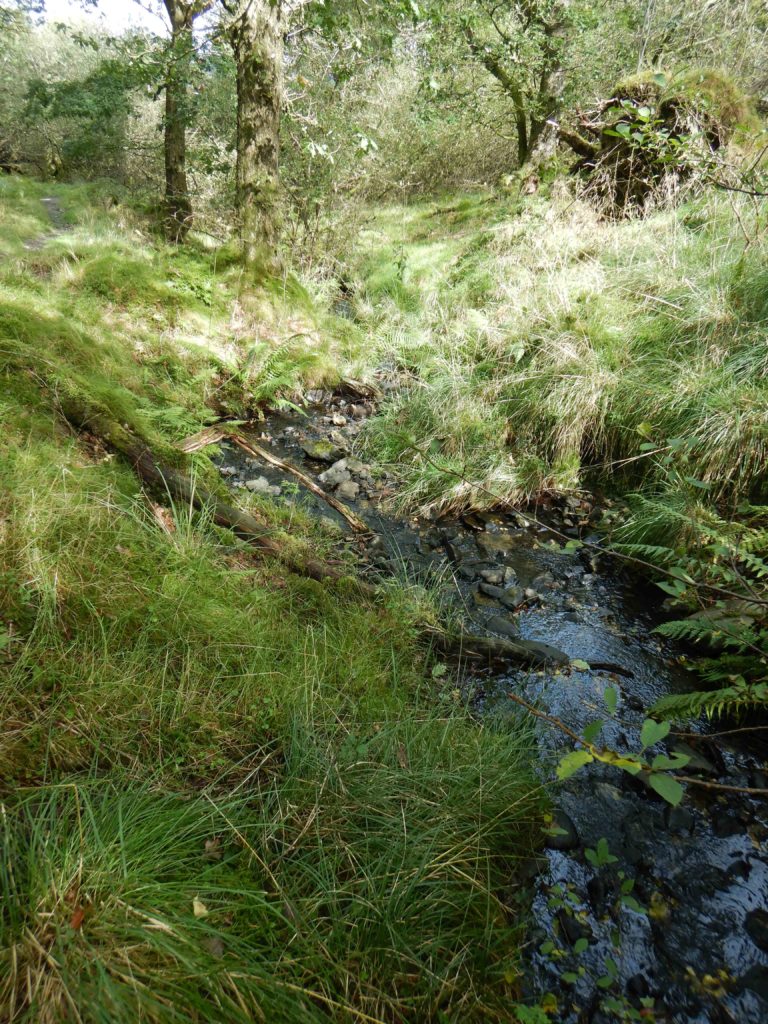 Das Warten hat sich gelohnt, heute kein Regen und die Sonne kommt immer mal wieder durch die Wolken. Also verlängern wir, denn heute ist Wandertag angesagt. Nach dem Frühstück machen wir uns los auf den Hausberg Gummers Howe hinter unserem Campingplatz. Es geht über Wiesen und Weiden entlang an alten bemoosten Steinmauern. Danach kommen wir durch einen Laubwald mit uralten Eichenbäumen. Überall sind mit Moos und Flechten überzogene Steine und Wurzelwerk zwischen den Farnbüscheln zu sehen. Neben und machmal auch auf dem Weg plätschert ein kleiner Bach. Es sieht aus, als könnten hinter jedem Baum Elfen oder Kobolde hervor glubschen.