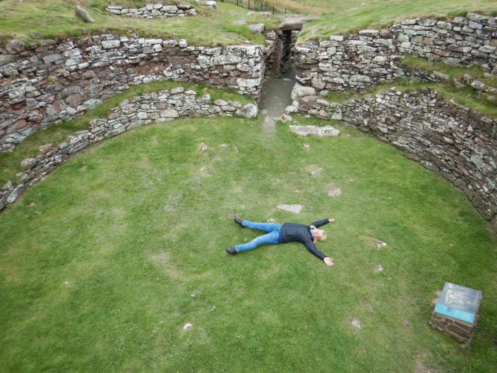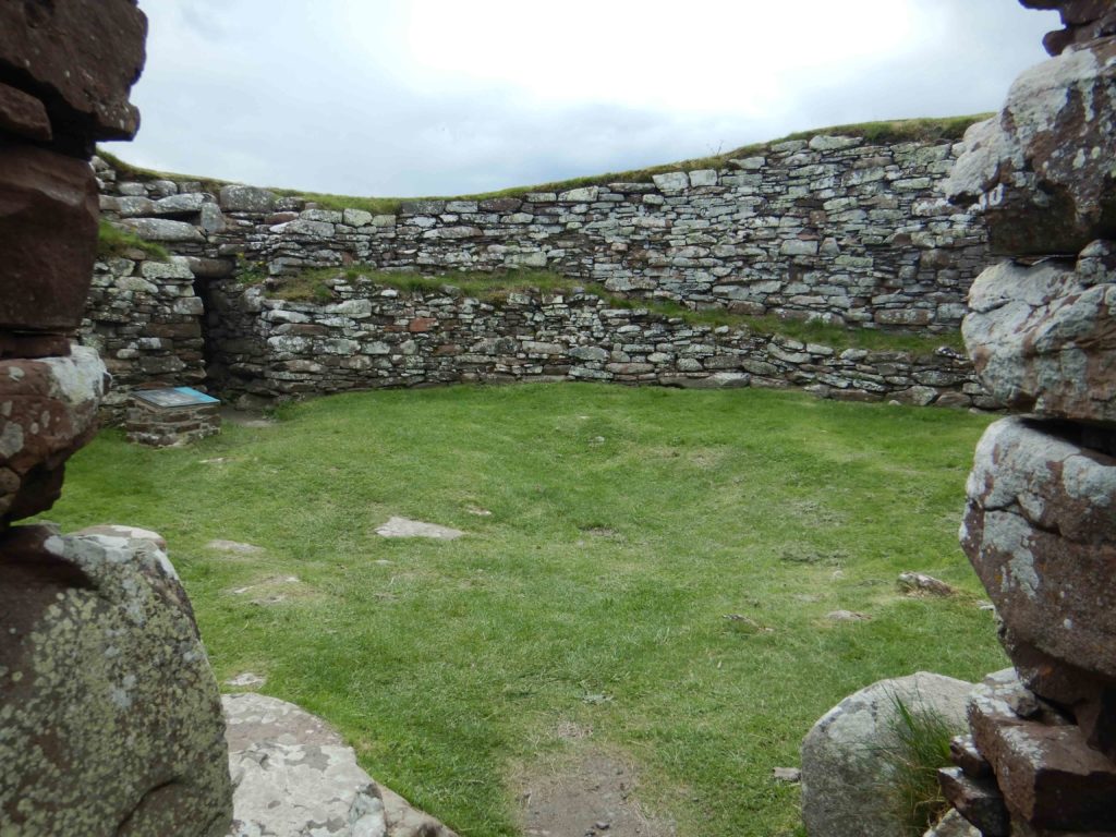 Auf der Weiterfahrt entlang der A9 kommt kurz darauf schon der nächste Stop an dem Carn Laith, Überreste einer Siedlung aus der Bronzezeit. Im Inneren ist es windstill und warm, da sich die Steine durch die Sonne aufgeheizt hatten.