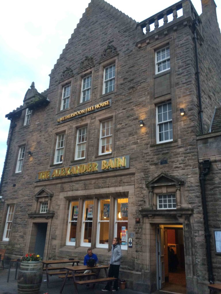 So nun ist es genug für heute und wir fahren nach Wick auf den Campingplatz, wo wir 2 Tage bleiben wollen. Wir bauen schnell das Zelt auf, und als die Mücken kommen verdrücken wir uns mit den Rädern in die Stadt zum Abendessen. Wir finden einen netten Pub und geniessen bei Ale und Cider unser Abendbrot (Haggis und Salat mit Ofenkartoffel).