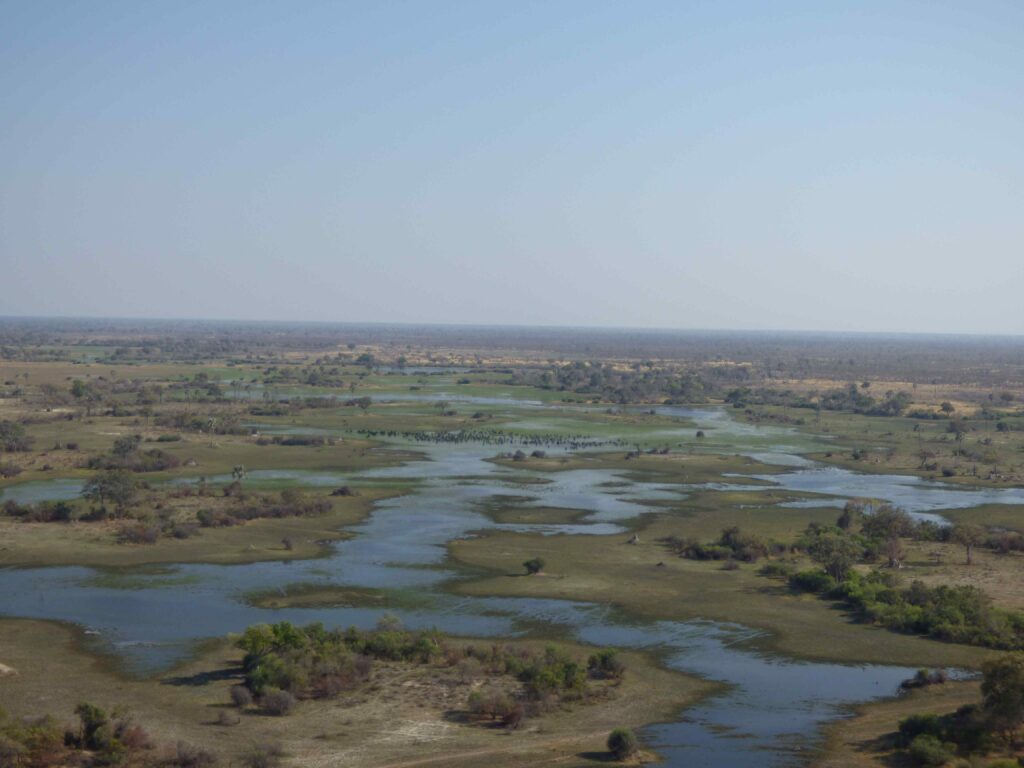 Der Flug fühlt sich an wie eine Mischung aus Motorradfahren ohne Helm und Achterbahn, dabei ist es sehr windig. Die Aussicht über das Delta ist grandios, wir sehen Zebras, Gnus, Elefanten, Giraffen, Flußpferde und einen Schakal. Der Pilot gibt interessante Informationen, beantwortet unsere Fragen und dreht extra Runden über interessanten Spots bzw. Tieren.