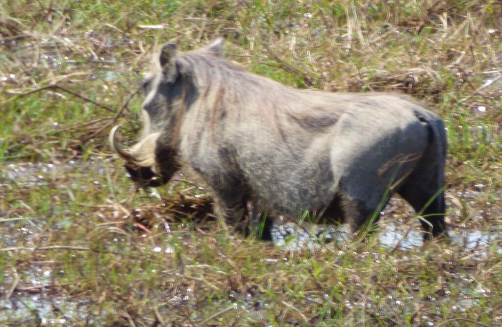 Am Morgen werden wir von den Rufen der Vögel und dem Schnauben der Hippos geweckt und machen uns nach dem Frühstück auf in den Mahango Bwabwata-Nationalpark. Der Park ist nur 2km entfernt und recht klein. Auf Pisten mit Sand und tiefen Bodenwellen geht es erst am Okawango entlang, Katrin übt ein bisschen Offroad-Fahren und macht es ganz gut. Wir sehen etliche schon bekannte Tiere, aber auch Warzenschweine, Krokodile und Flußpferde, zudem gibt es etliche stattliche Bäume zu sehen.