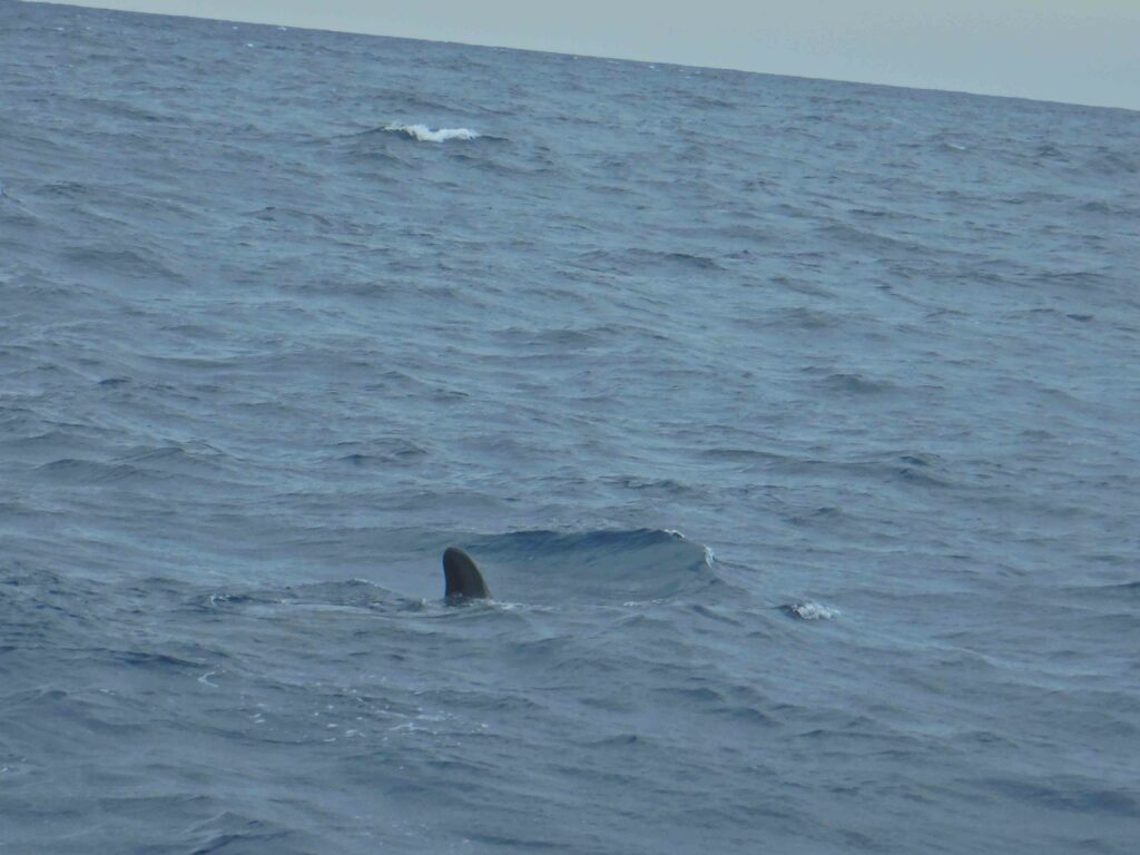 Nach einigem Suchen und telefonieren mit den anderen Booten sehen wir tatsächlich eine Familie Grindwale ( 4 Stück) und können diese eine Zeit lang beobachten. Leider sind sie nur schwer auf Bilder zu bannen und mein tolles Video kann ich hier nicht hochladen. So bleibt es hier nur bei einer armseligen Flosse.