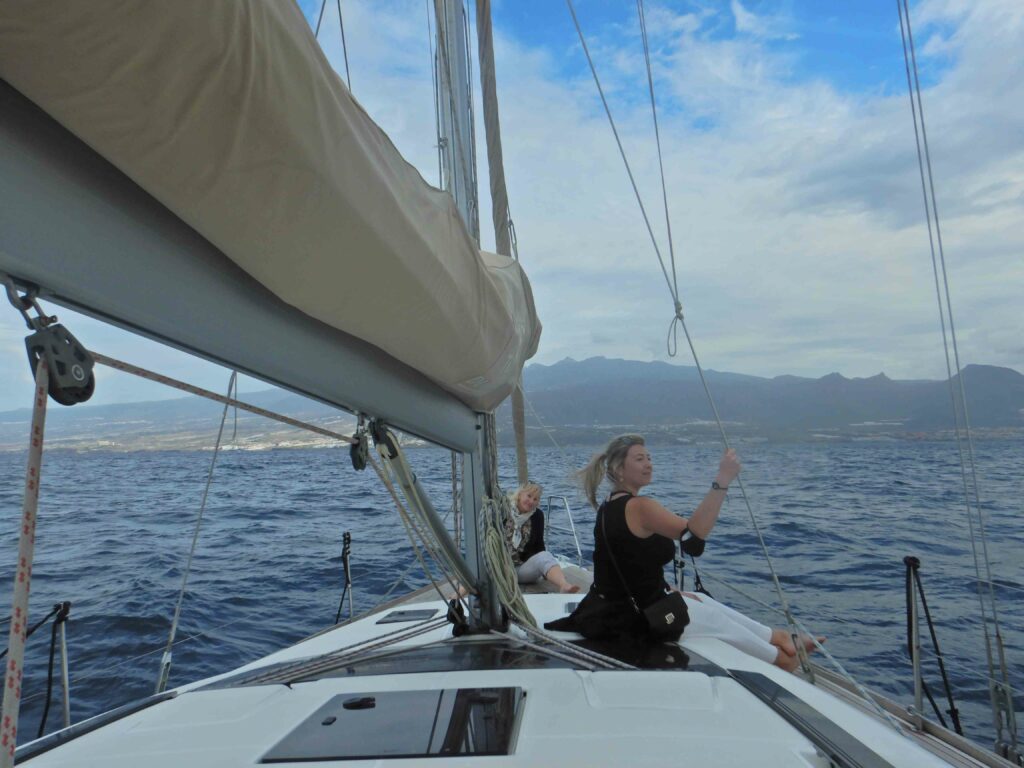 Am Montag haben wir mit Marina und Stefan einen Trip mit Segelboot gebucht. Es soll in der Nähe die Möglichkeit geben, Wale und/oder Delfine zu sehen. Bei schönem Wetter und etwas Seegang geht es um 10 Uhr vom Hafen in Adeje los.