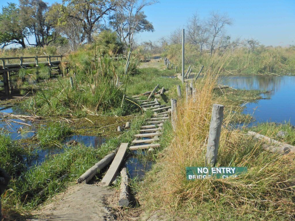 Nun gibt es eigentlich nur noch eine Piste bis zur Third Bridge Lodge und zur dortigen Brücke. Diese Brücke war seit geraumer Zeit defekt, soll nun aber seit 3 Tagen wieder befahrbar sein. Nach einigen weiteren Kilometern sandiger Piste kommen wir an und die Brücke ist tatsächlich befahrbar, das ist fast wie ein Wunder. Besonders neu sieht sie allerdings nicht aus, keine Ahnung was man da solange dran herumgebastelt hat.