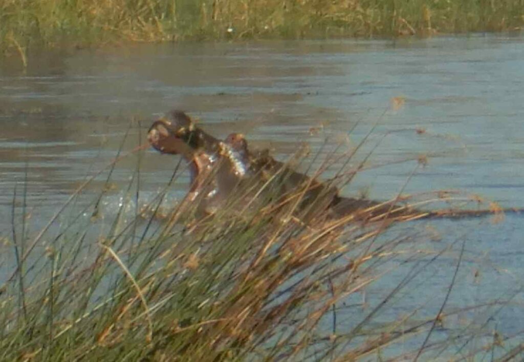 Kaum haben wir die Hauptpiste verlassen, wird es unübersichtlich, ein Gewirr von kleineren Piste und Fahrspuren durchzieht die Gegend. Wir sehen zwar jede Menge Tiere, kommen aber schnell bei der Navigation durcheinander, auch weil wir immer wieder durch überschwemmte Pistenstellen gestoppt werden und zurück müssen. Doch wir finden uns wieder zurecht und kommen zurück zur Hauptpiste und finden auf dem weiteren Weg auch den Abzweig zum Hippo Pool, einem grossen See mit Flußpferden. Da müssen wir hin, und es lohnt sich auch.